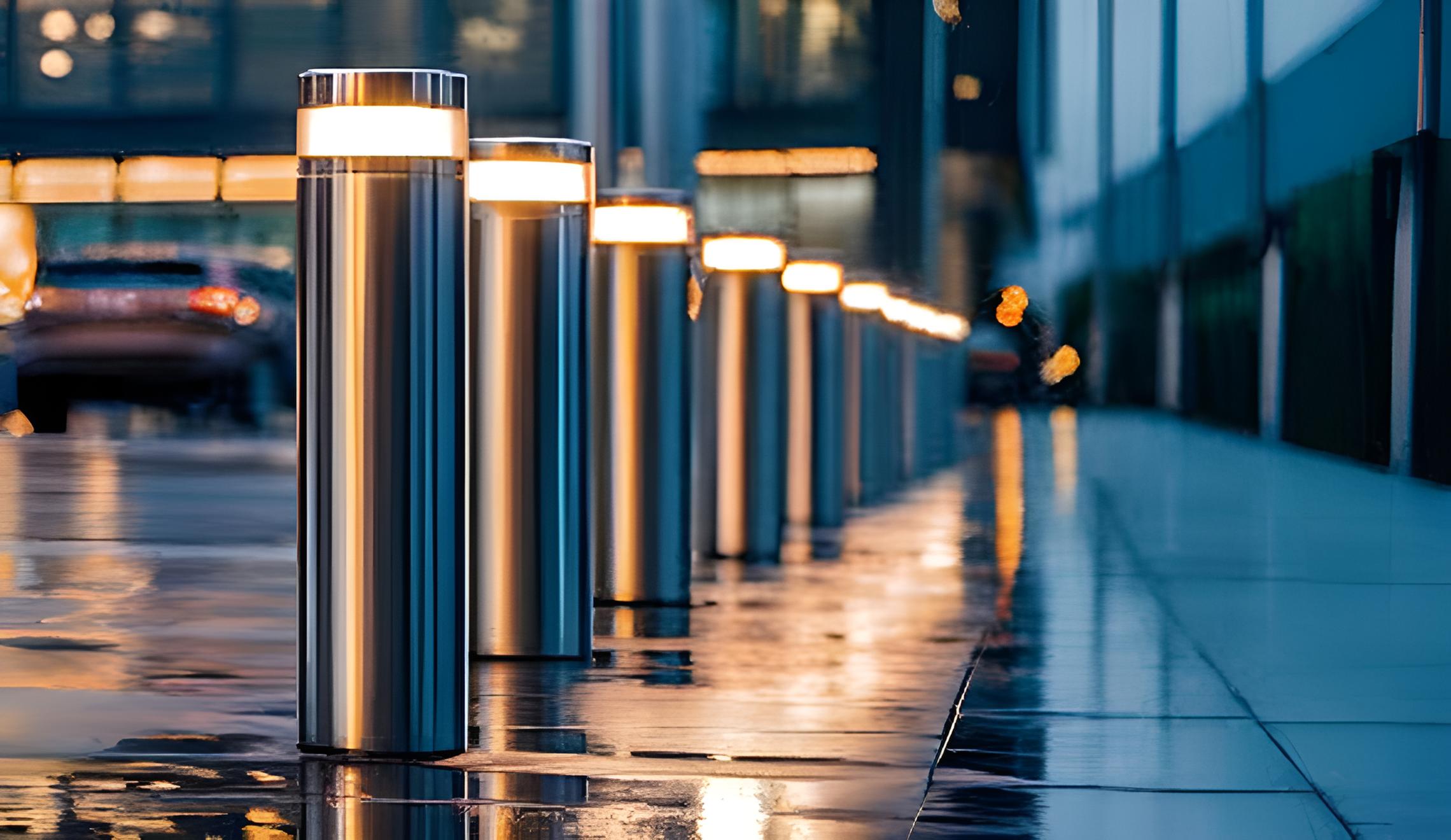 Strong vertical posts (automatic/manual) used for restricting unauthorized vehicle entry, often seen at high-security zones, banks, and government offices.